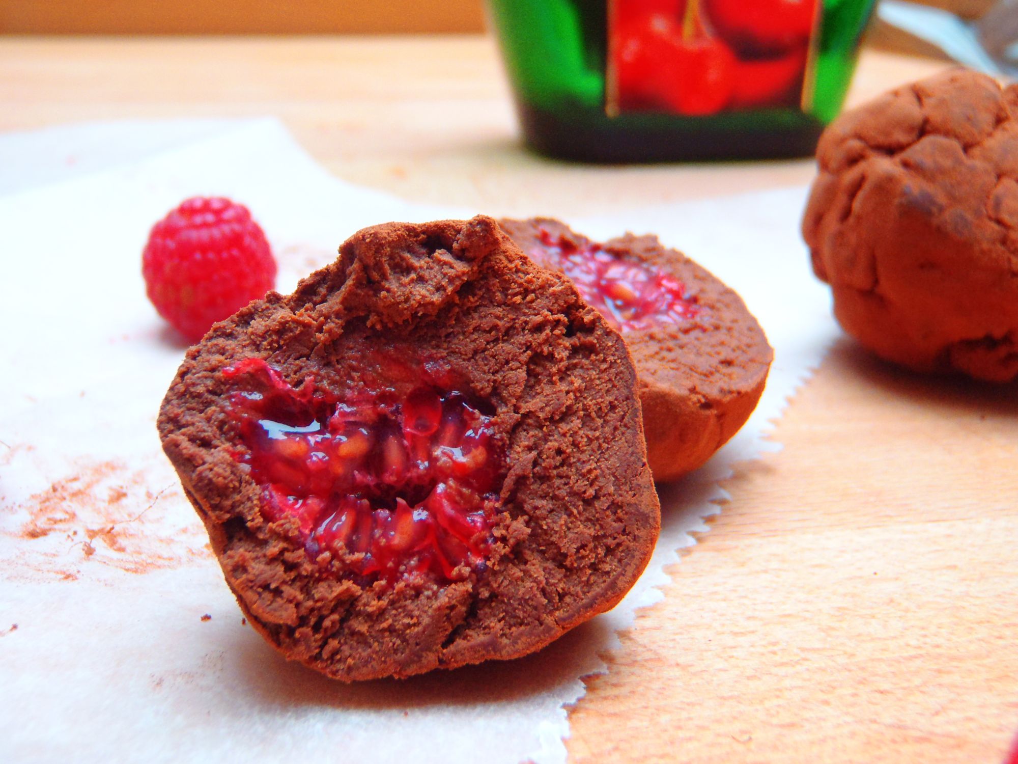 TRUFAS AL KIRSCH RELLENAS DE FRAMBUESA