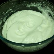 4- Con las varillas mezclamos las yemas con el azúcar hasta que quede una crema blanquecina y bastante aumentada y esponjosa.