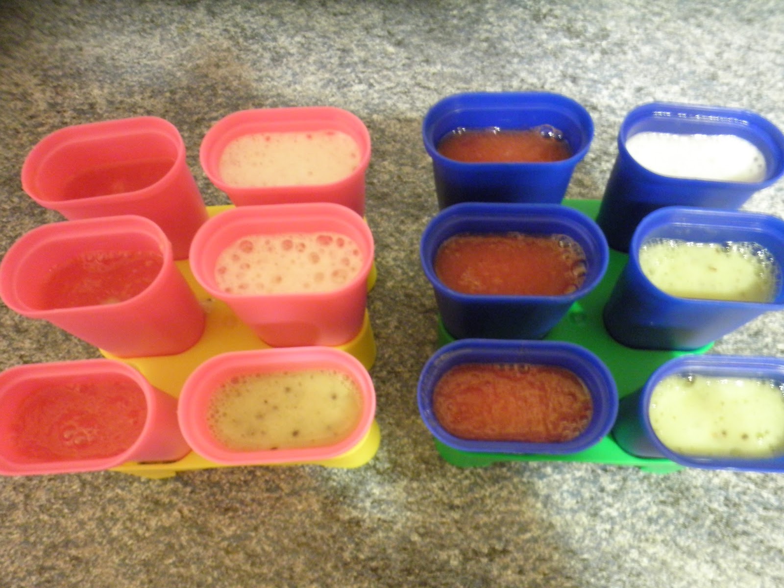 4. Vierte la mezcla en moldes para hacer polos (puedes utilizar cualquier otro molde) y mételos en el congelador durante 6 horas.