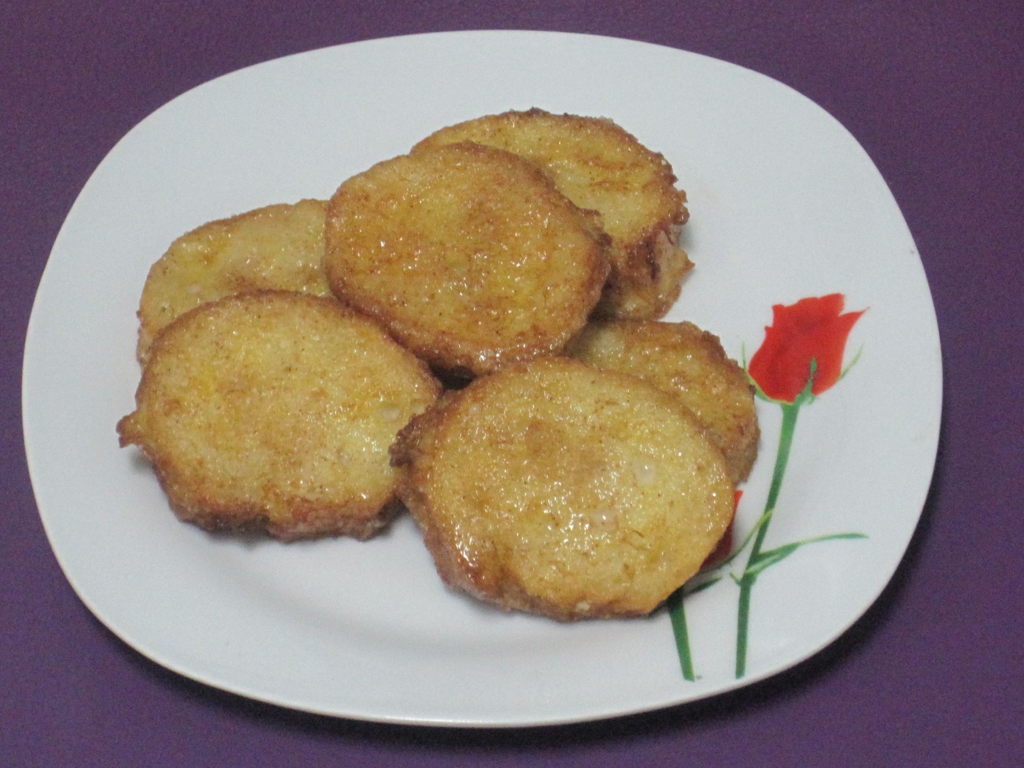 Cortar el pan en rebanadas de 1 cm de grosor aproximadamente y empapar bien en la leche. Pasarlas por el huevo batido y freír a fuego medio.