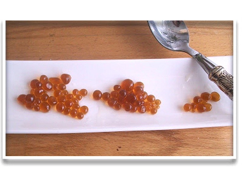 Podemos hacer el caviar con lo que queramos, zumos, infusiones, etc y obtendremos bolitas de infinidad de colores y sabores, incluso podemos mezclar bolitas de varios colores en un mismo postre y puede quedar muy divertido...!!!