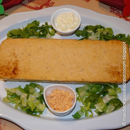 Desmoldarlo en frio y adornarlo con lechuga picadita alrededor, y por encima le podeis poner salsa rosa, mahonesa o ajonesa, al gusto, también lo podeis presentar solo con la lechuga y que cada uno le ponga la salsa que más le guste.