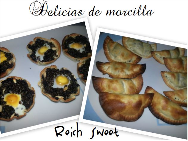 Para ambas recetas tendremos que poner nuestra morcilla sin piel en una sarten con poco aceite y saltearla con unos piñones. También se puede añadir cebolla pero bueno yo al utilizar morcilla de arroz no me apetecía mucho. Una vez que tenemos hecha la morcilla ponemos el horno a precalentar a 180º y vamos a por las preparaciones de las dos recetas.