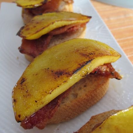 Tostas de papada ibérica con mango / Tostas de manzana caramelizada y queso Camembert gratinado
