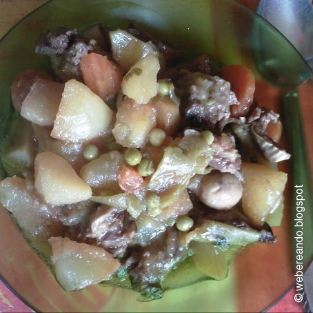 Pon un chorro de coñac, deja que evapore y echa agua hasta que cubra la carne. Cocerla bien y reservar en la cazuela.