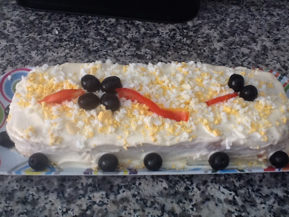 Pasado un buen rato destapamos, untamos de mahonesa y adornamos de huevo cocido.