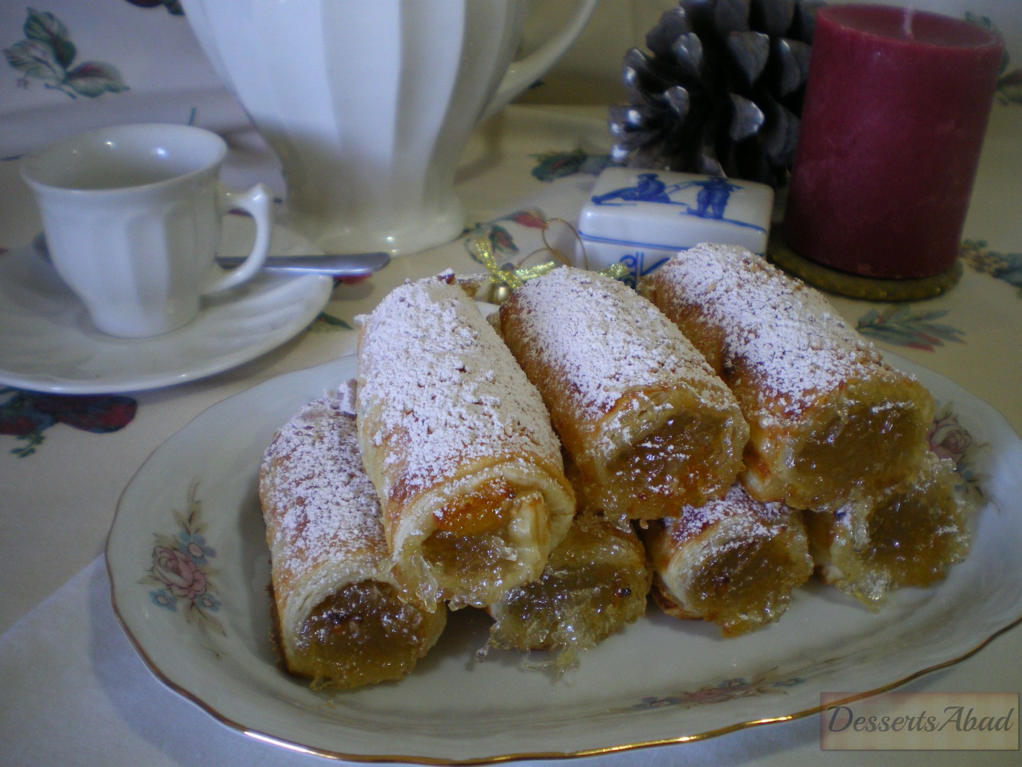 Un dulce rápido, delicioso y la mar de vistoso: unos tronquitos elaborados con hojaldre congelado y rellenos de cabello de angel y picatostes de naranja confitada.Los presentamos con un esparcido de azúcar glass y canela y voilá: un atractivo dulce que podemos presentar como colofón a una comida navideña o en cualquier otra ocasión, y lo mejor de todo solo os llevará 20 minutos su elaboración.