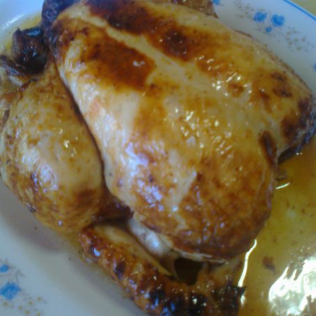 Sobre las patatas, ponemos el pollo con un chorro de aceite por encima y horneamos unos 45 minutos hasta que esté asado.