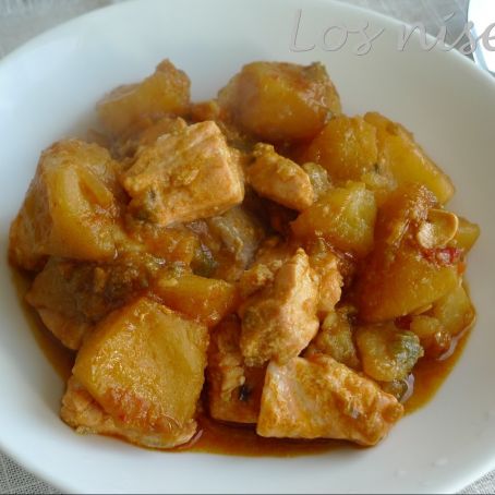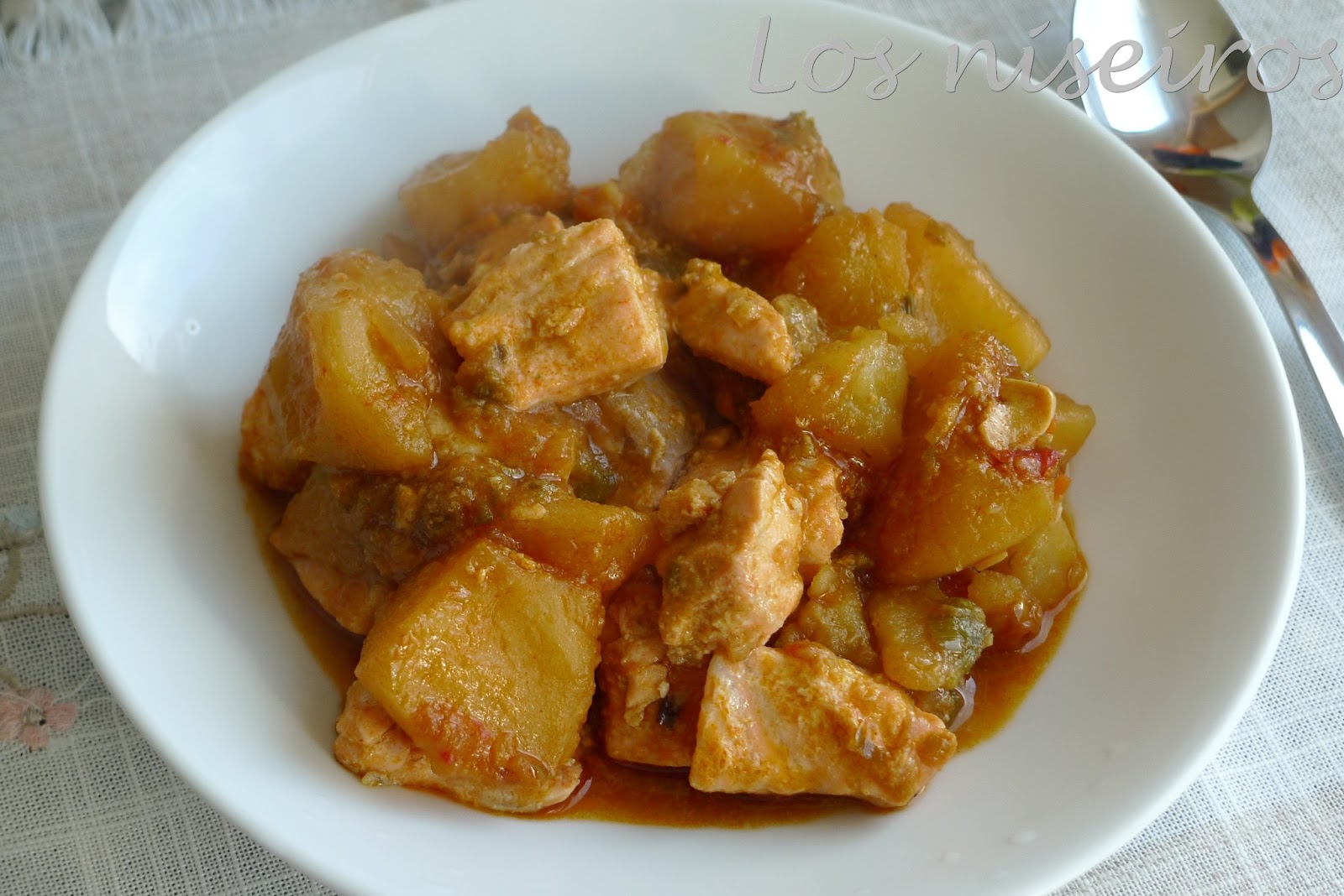 Las patatas la podemos hacer con carne de cerdo (magro, costillas,...)con ternera o con pollo.