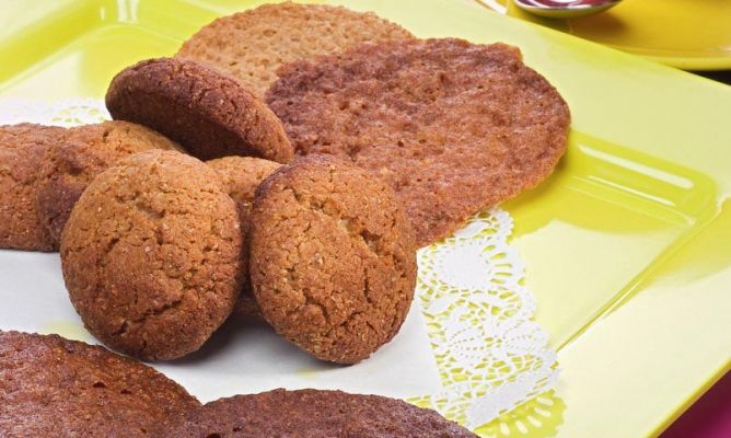 Sirve las galletas de jengibre con el zumo y el batido de cacao.