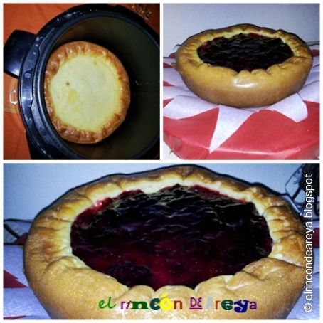Se mezclan todos los ingredientes hasta conseguir una crema y se vierte en el vaso de la olla. Con la olla que yo utilizo el tiempo estimado sería 60 minutos en el modo horno. Una vez terminado el tiempo dejaremos que repose 10 minutos sin abrir la tapa para que termine de cocerse. Recordar que las tartas de queso frescas no deben ser desmoldadas hasta que estén frias pues no tienen la consistencia adecuada para ser manipuladas sin romperse.