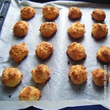 Coger porciones de la masa con las manos ( bien limpias) y hacer la forma de las cocadas bien sobre la bandeja del horno o en cápsulas de papel pequeñas.