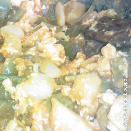 En una cazuela poner los fréjoles y añadir 6 cucharadas de tomate frito. Deja que se cocine 5 minutos.