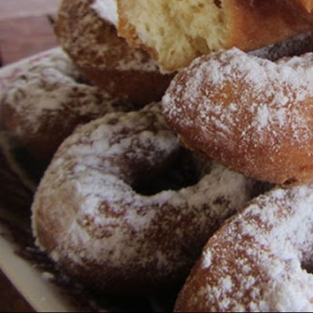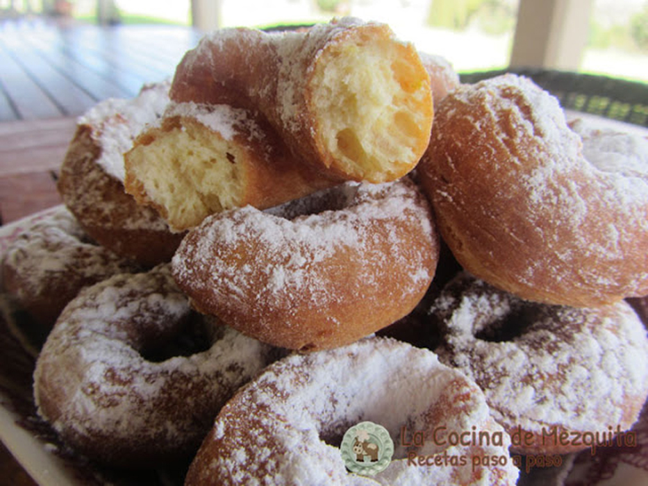 Formar las rosquillas y freir. Pasar por azúcar glass.