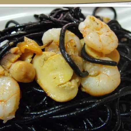 Una vez transcurridos los 9 minutos (tiempo de cocción indicado en el envase de los spaghetti al nero di sepia de la marca Eroski) escurrimos los espaguetis inmediatamente y pasamos la pasta por agua fría (para cortar la cocción). Con este proceso conseguiremos lo que se llama pasta “al dente” o en su punto justo, es decir, que la pasta no se pase.