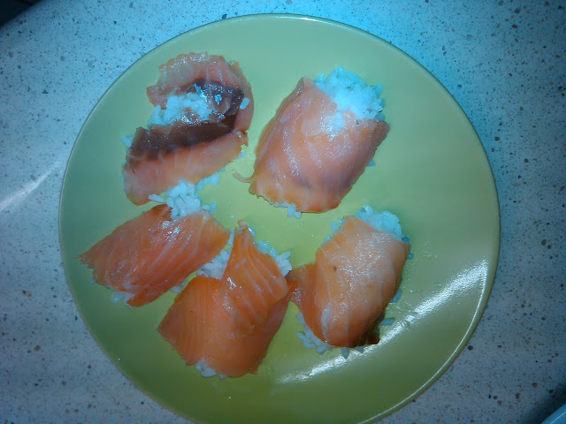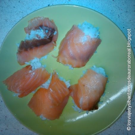 primeramente cogemos la cantidad que queramos hacer de ARROZ DACSA SUSHI y la ponemos en un bol con agua y removemos bien para limpiar el arroz. lo escurrimos bien, Entonces lo ponemos a hervir, y cuando está ya hervido, escurrimos y hacemos las bolitas y lo envolvemos con el salmón ahumado.