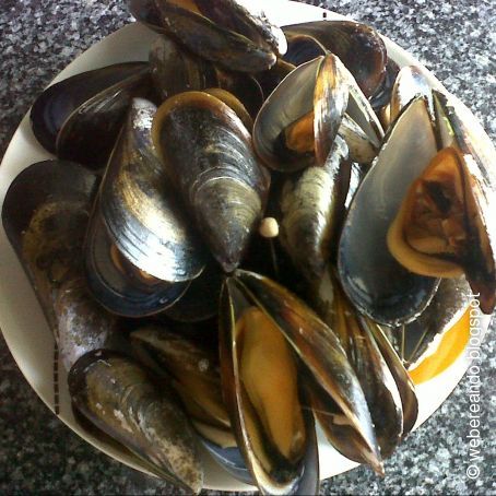 Otra variante: mejillones, laurel y chorro de vino blanco deja que hiervan, saca, escurrir en el fregadero y dejar tapados con un trapo 5 minutos para que se sequen bien y se evapore el agua que les sobra
