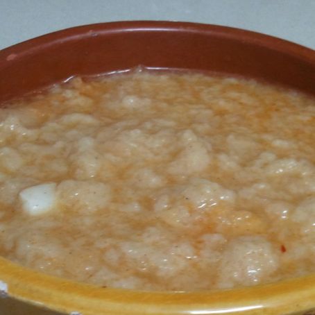 Mojar la mezcla con agua o caldo hasta cubrirla bien. Cocer cinco minutos. Añadir los huevos y la sal necesaria y cocer un minuto más.