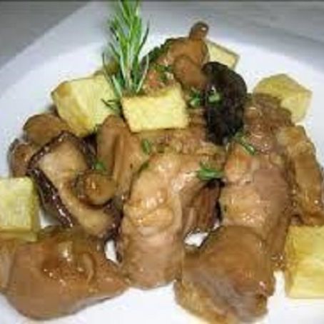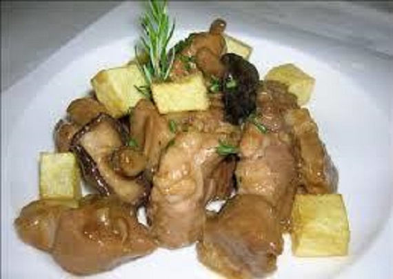 Freír una patata en trozos no muy grandes y cuando esté casi hecha, sacarla y añadirla al guiso.