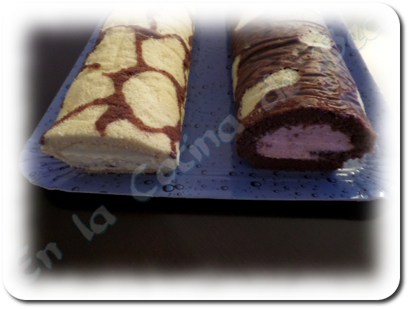 Cuando la placa de bizcocho esté fría, desenrollamos, rellenamos y volvemos a enrollar, cortamos los dos extremos del bizcocho (para que quede más bonita la presentación) y a la nevera hasta, aproximadamente, media hora antes de comerlo.
