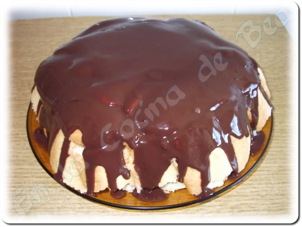 Cubrimos con chocolate que habremos, previamente fundido con la nata y la mantequilla y volvemos a meter en la nevera hasta poco antes de servir.