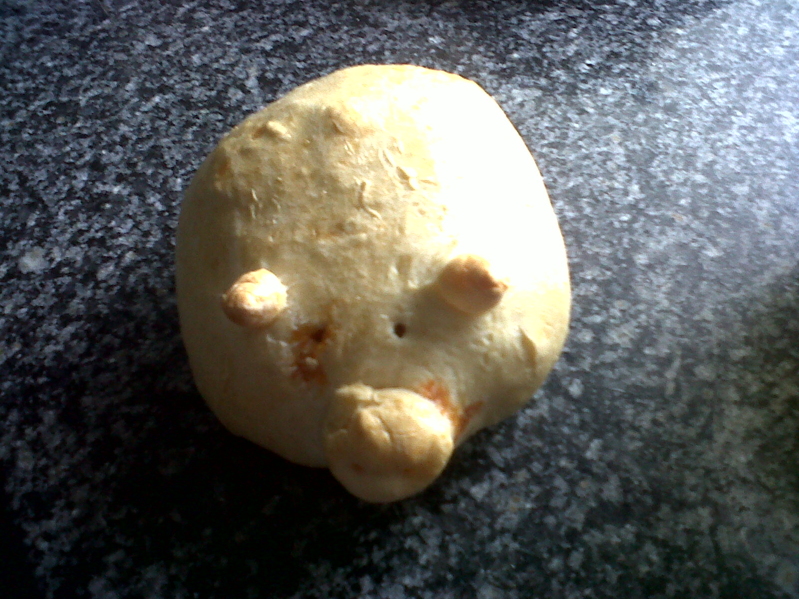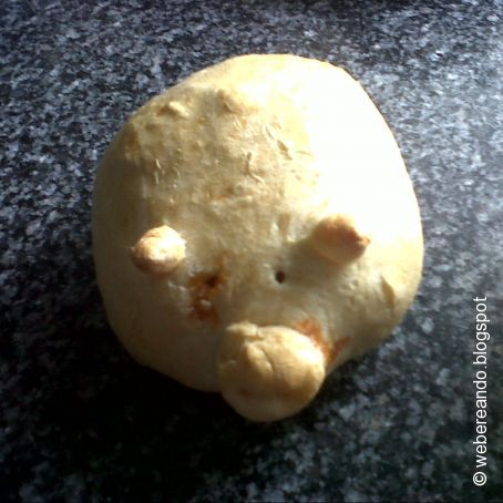 Termina de hacer todos los cerditos y píntalos con el huevo batido. Hornea 15 minutos a 200º (en estos 15 no se puede abrir la puerta), baja ahora a 180º y dejamos otros 15/20 minutos hasta que los veas doraditos.