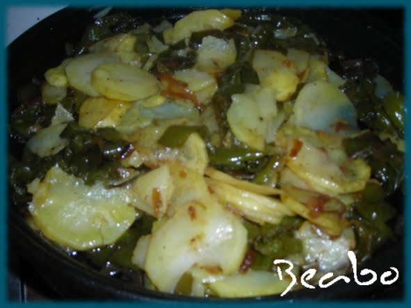 Cuando esté todo pochado, añadiremos las patatas, mezclaremos bien y dejaremos 4 o 5 minutos más al fuego.