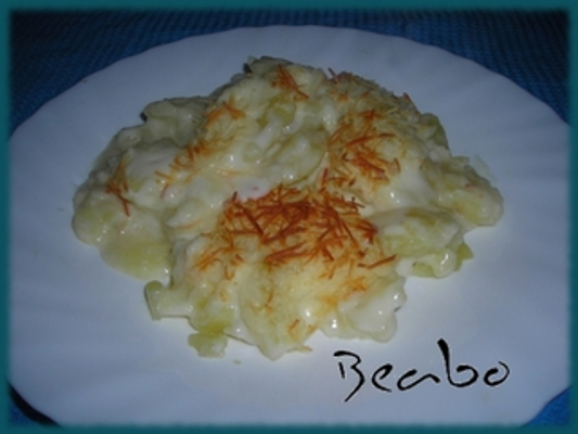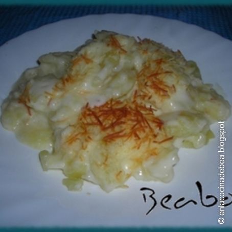 Cuando estén listas, las escurrimos bien y las ponemos en una fuente resistente al horno, echamos, por encima, una bechamel y queso rallado y metemos en el horno, precalentado a 180º - 200º C, hasta que el queso esté doradito.