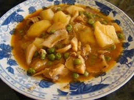 Aparte, en una sartén se echan unos guisantes para acompañamiento que se le añadirán a la sepia dándoles unas vueltas en el jugo que ésta ha soltado.