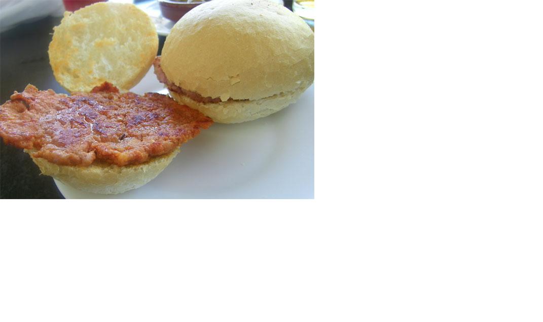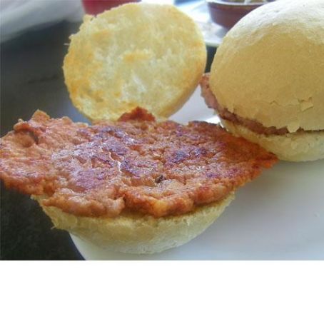 La masa aplastada en la plancha hasta dejarla bastante fina se asa y luego se coloca en un pan, normalmente un bollito de panadería,no bollos de esos blandos i con sesamos por encima alo americano, por favorrr