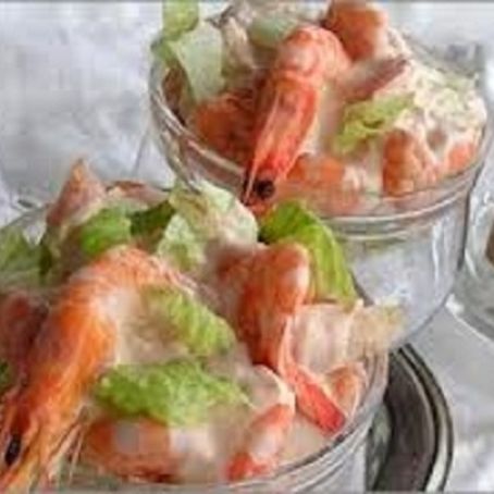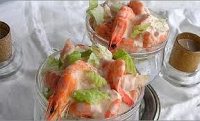 En cada recipiente añadiremos una o dos cuchara de la salsa en la base, luego un poco de lechuga y mezclaremos bien, y para terminar unos tres langostinos.