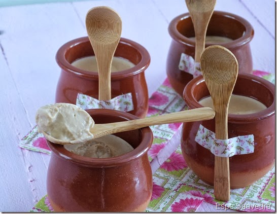 Vertemos con cuidado en los vasos y tapamos con film trasparente. Cuando temple, metemos en la nevera unas 6 horas.