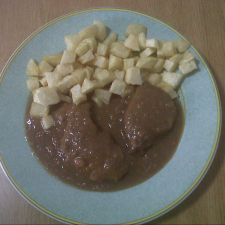 Se pone todo en una cacerola en crudo (tomate y cebolla en rodajas). Se deja cocer y al final se añade un vaso de vino y agua según el caldo y gusto de cada uno