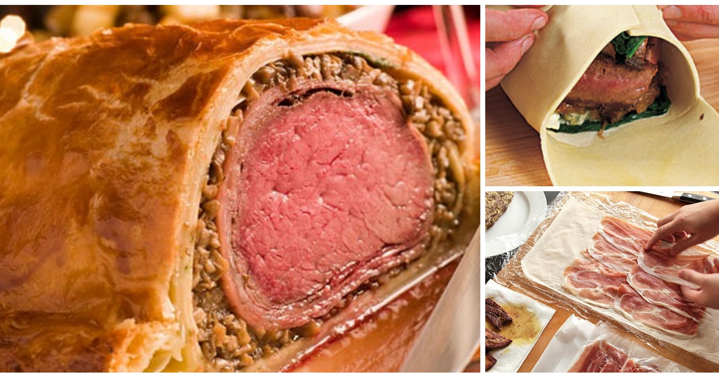 Solomillo de cerdo relleno de queso, bacon y cebolla caramelizada, envuelto en hojaldre