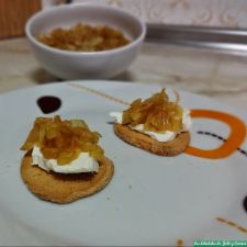 cortar cebolla en aros, rehogar en aceite, cuando esté dorada poner salsa de soja, fuego fuerte, poner agua, y fuego lento hasta que reduzca la salsa.