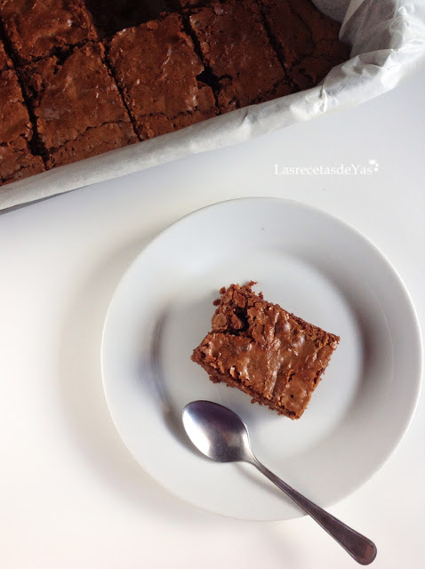 Ponemos la masa en un molde rectangular o cuadrado, que yo previamente cubro con papel vegetal y lo metemos al horno durante 25 minutos, a 180º.