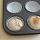 cucharita de mezcla de canela y azúcar en cada muffins.