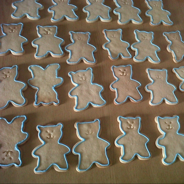 La boquilla no debe tocar nunca la galleta, hay que tenerla a una altura de uno o dos centímetros por encima del borde para que tengamos mas control sobre el lugar hacia donde queremos dirigir la glasa e ir poco a poco haciendo el contorno sin que quede muy pegado al borde de la galleta. Sin nos salimos del borde, podemos intentar colocarlo sobre las galletas con un palillo. Si realmente nos ha salido un estropicio, podemos retirar toda la glasa con una espátula y empezar de nuevo .