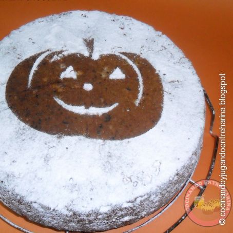 Una vez frío espolvorealo con azúcar glass con la ayuda de un colador. Yo hice una plantilla en forma de calabaza y quedó muy bien para la ocasión.