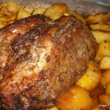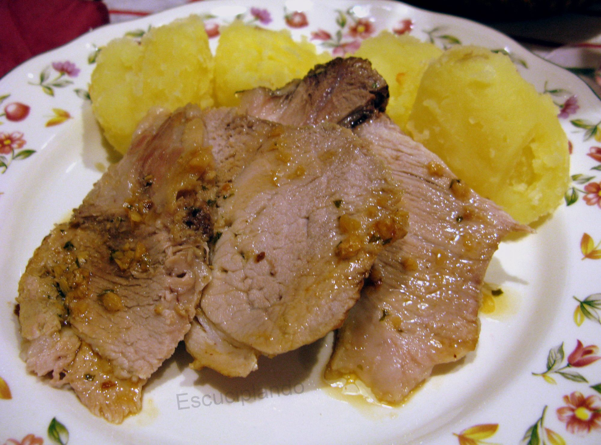 Hemos de calcular aproximadamente 1 hora por kg. de carne, este lacón tenía más de 3 kg., así que fueron sobre 3 horas y media de horno.