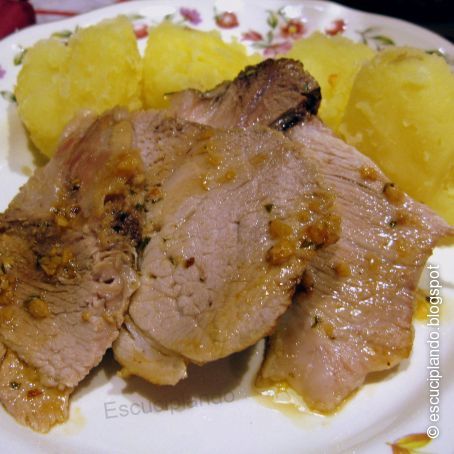 Le iremos dando la vuelta para que coja sabor por todos los sitios más o menos cada 8-10 horas regando bien con el mejunge todo el lacón hasta la hora de cocinarlo; en mi caso, el día que lo iba a cocinar, le volví a dar la vuelta a primera hora de la mañana hasta que lo metí al horno más o menos sobre las 11:30h. de la mañana para comer sobre las 15:00h.
