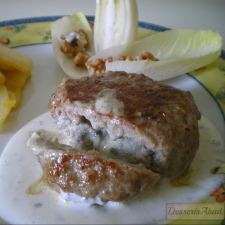 En una sartén con un chorrito de aceite marcamos la hamburguesa, que se dore un poco por fuera pero que por dentro quede poco hecha ya que va a ir al horno y no queremos que quede seca. Reservamos.