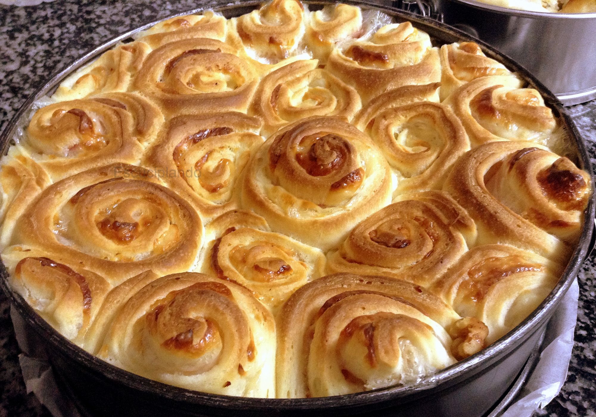 El mismo procedimiento para el brioche relleno de queso roquefort con nueces troceadas; como lo hice con el resto de masa, éste me quedó más pequeño.