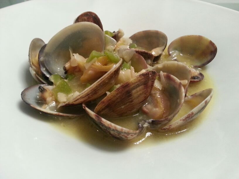 La presentación es muy sencilla, porque este tipo de platos visten por sí sólos. Un platito hondo, las almejas bien puestas y su salsita por encima y…..listo para ser degustado.