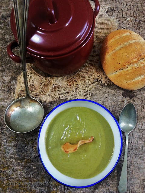 Apetece una cremita de verduras, es un primer plato que siempre me gusta, esta vez con un toque especial de manzana en la crema y el crujiente de los chips, riquisima así que a probarla.
