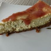 Pastel de queso, ruibarbo y fresas