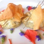 Saquitos de masa brick rellenos de pollo con pistachos y especias