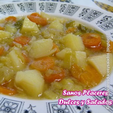 Primero, limpiamos bien las verduras y en caso de la zanahoria, las pelamos. Luego, troceamos el puerro (en rodajas de 1cm aproximadamente), la zanahoria (en rodajas de ½ cm aproximadamente) y el pimiento verde en dos trozos. Todo esto, lo ponemos a cocer hasta que quede el puerro suelto y la zanahoria casi blanda.
