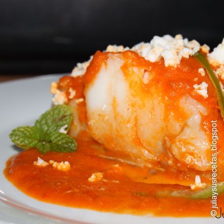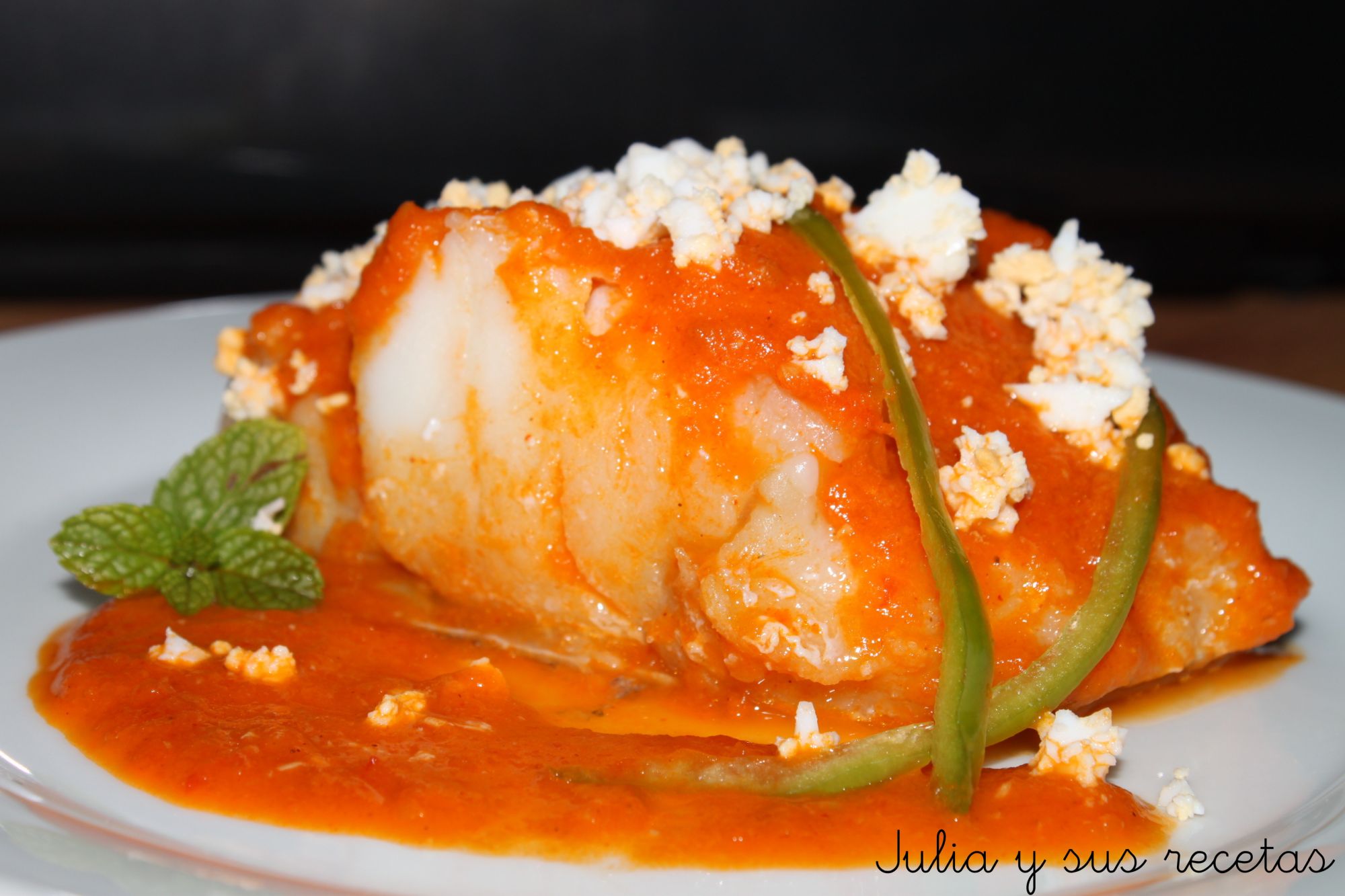 Lo echamos en una cazuela y le añadimos una poquita agua, 1/2 vasito, si vemos que está muy espesa la salsa y dejamos cocer un minuto o dos, rectificamos de sal y echamos el bacalao. Lo dejamos cocer 1-2 minutos.