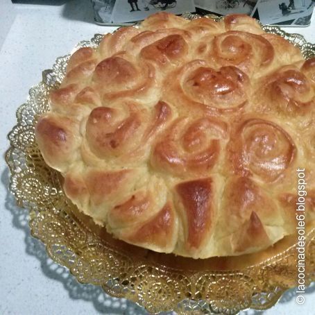 Una receta sacada del blog de la cocina de Lola, tiene una vista excelente y es un pan muy rico. Indicado para desayunar, merendar o acompañar el almuerzo, vistiendo tu mesa de manera festiva.